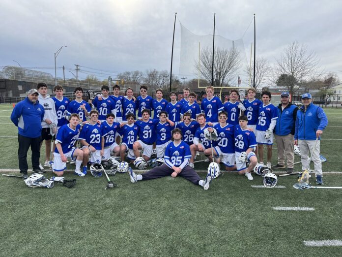 A-B (8-2) got three separate hat tricks from Ethan Fennel, Christian Maranian and Will Cronin. Maranian also added three assists. Fennel had one. Tristan Clayton potted two goals with two assists. Thomas Quirk had three assists and Dylan Cotter also chipped in with a helper. James Dee won 14 face offs and Luke Hashem had two. Chris Houle made 10 saves.